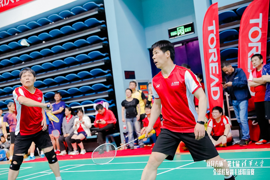 今年是環(huán)境學院首次全部由環(huán)境校友組隊參賽,15名隊員平均年齡44歲,年齡最大的李京峰老師雖65歲依然靈活矯健不輸少年;中年隊員則以溫宗國、岳東北兩位身擔工作重任依然常年堅持打球的學院教師為代表;年齡最小的崔琦則剛邁出校門兩年多,工作鍛煉兩不誤。張宏亮、唐紅萍、付雷、陳大揚、賈建麗、張志強、杜兵、李福志、張麗萍、陳湛等校友也在比賽中努力拼搏。老、中、青三代環(huán)境校友與全校羽毛球校友歡聚一堂,以球會友,展現(xiàn)出了優(yōu)秀的環(huán)境體育精神,完美詮釋了“為祖國健康工作五十年”的清華體育精神。